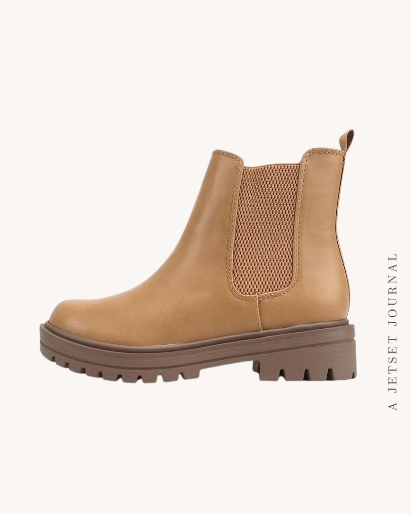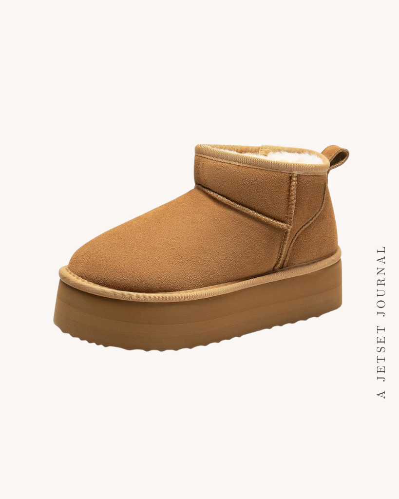 Boots are always a favorite for this time of year. A simple platform boot with fuzzy lining is so comfy and feels like you’re out and about wearing your slippers during the day. These ankle booties with a chunky low heel are great for a bit of a dressier vibe when you still want to wear a pair of boots.