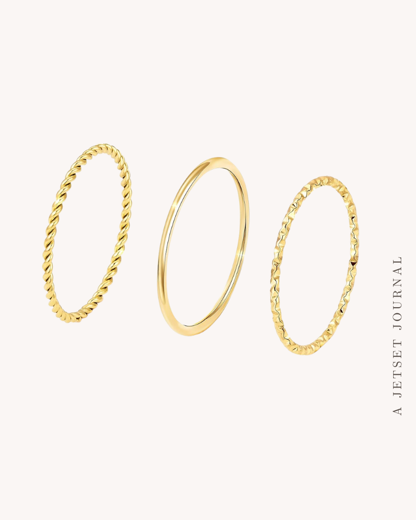 Add some simple accessories to your outfits like a pair of aviator sunglasses that come in a bunch of cute color options, as well as some simple gold jewelry for an affordable price. These chunky earrings and ring stack are something you can easily put on with any outfit as a finishing touch.