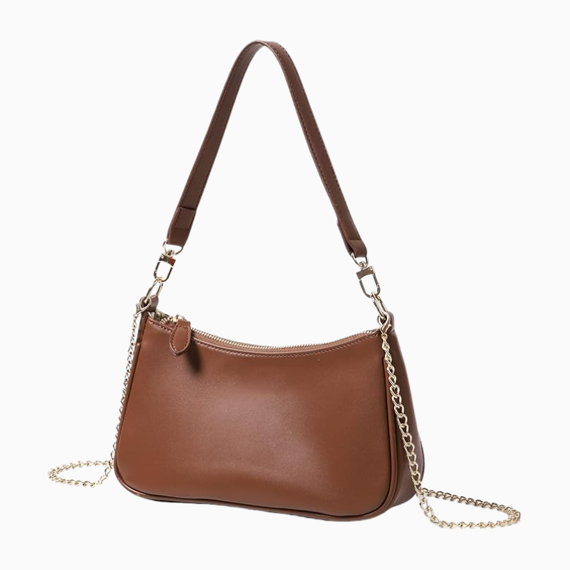 Another thing that can be a finishing touch on your fashionable new outfit is choosing the right bag. Something like this small dark brown shoulder bag or a large slouchy black tote can give your outfit totally different vibes. That’s why accessorizing can be so much fun!