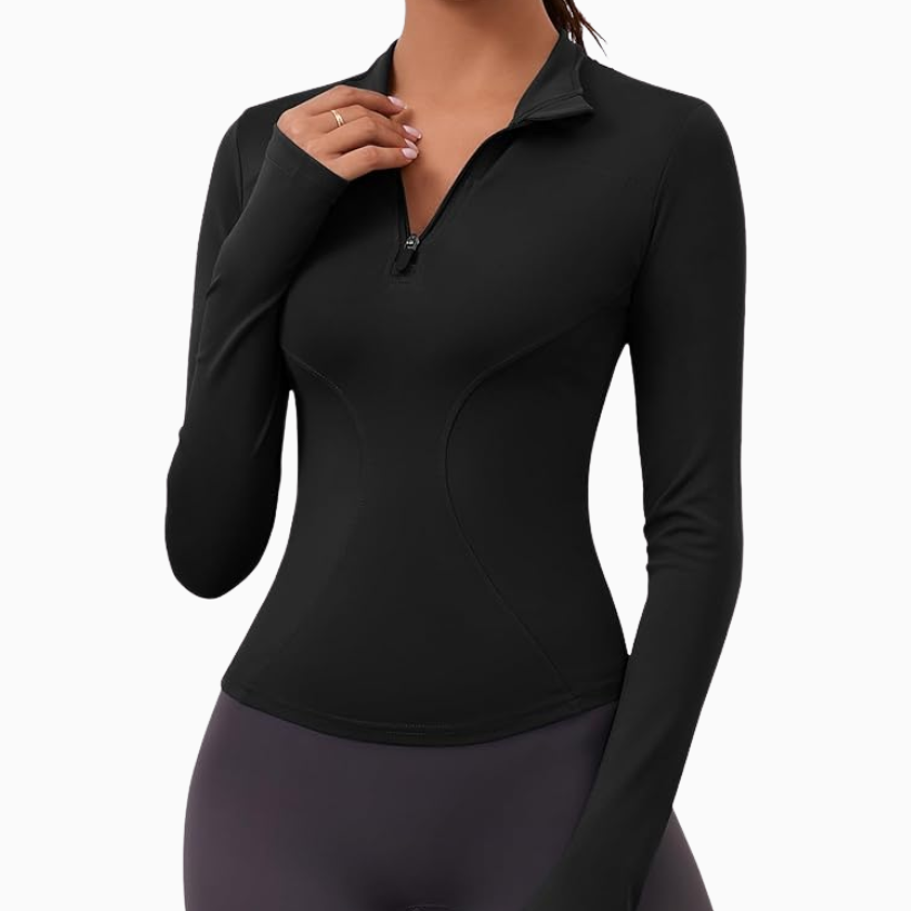 For tops, you’ll want to layer based on the time of year. Something like a full zip up long sleeve or a quarter zip pullover are great to throw on before heading out the door. There’s also lightweight fitted long sleeve tees for when it’s not too chilly out.