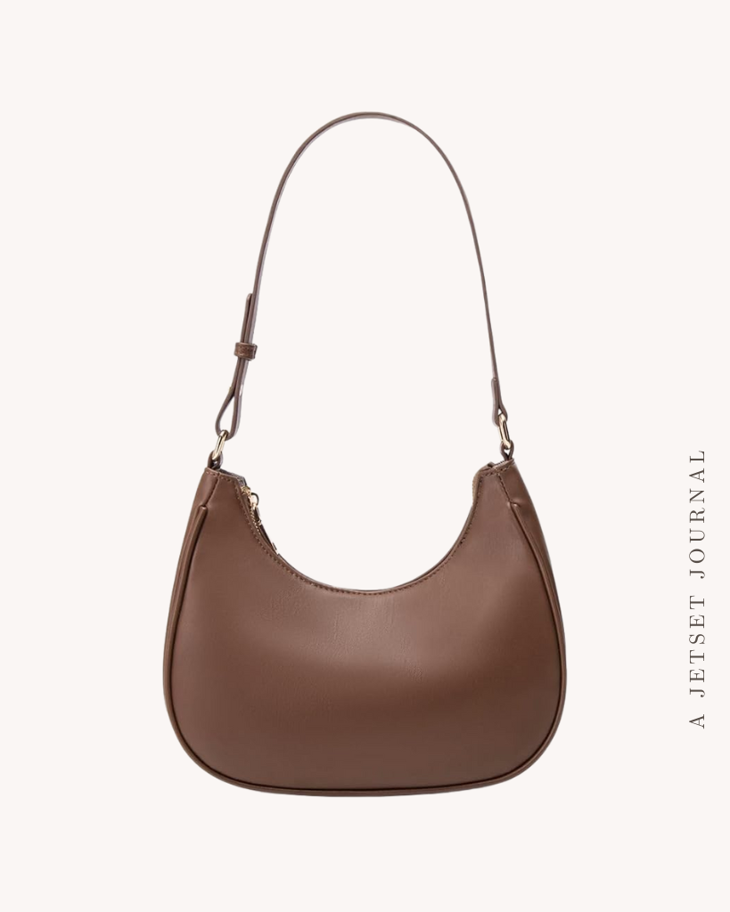 Shop bags on Amazon to hold your essentials while being a cute accessory to match your outfit, of course. This brown shoulder bag is such a basic bag you’ll want to have for a simple choice. It comes in a bunch of colors, too! I also really like this black structured bag that has both a top handle and a longer adjustable strap so you can wear it how you prefer.