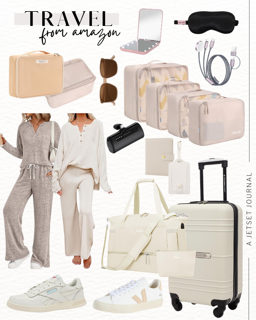 Let’s talk travel essentials first. If you need some new luggage, Amazon has great quality options that you’re going to love! Shop roller luggage with a hard shell to keep your stuff protected, as well as various duffel bags that are great for a carry on option or a quick weekender trip. If you’re getting new luggage, make sure to get some luggage tags for the airport. And these packing cubes let you organize all of your outfits and essentials with ease while you pack.