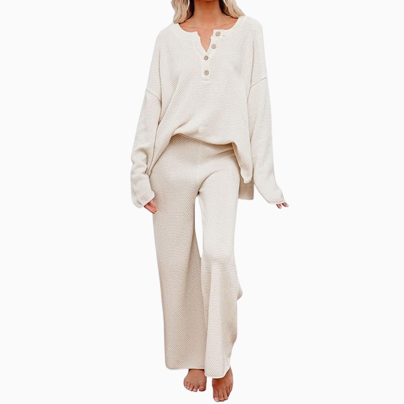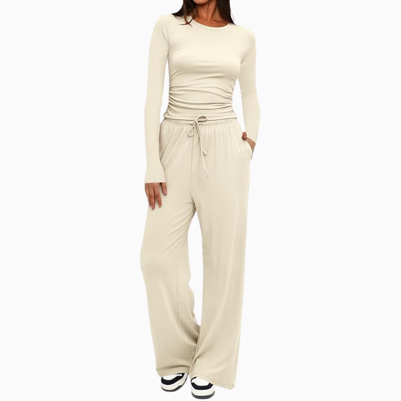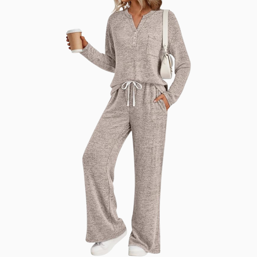 Now for what to wear while you travel. A matching set is always my go to! Takes the decision making out of picking out an outfit and you know you’ll be comfortable during all the hours spent traveling to your destination. Here are a few bestsellers like this soft henley style slouchy long sleeve with matching pants, or a fitted long sleeve tee with wide leg pants to match.