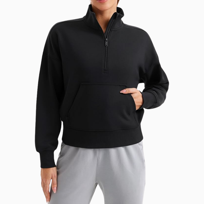 If you want to take the decision making out of getting dressed, get yourself some matching sets! It always makes it easy to wake up and go because you know the outfit is going to look good together. I’ve linked two sets, one being a fitted long sleeve top with matching wide leg bottoms and the other is a quarter zip pullover with matching wide leg bottoms in a fit of a thicker fabric than the first.