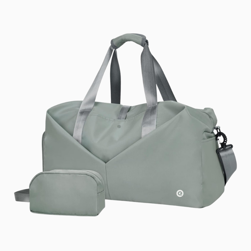 For working out on the go, grab a duffle bag that holds all of your essentials. This is perfect for a bag to bring to the gym and have a change of clothes, snacks, water, towel, extra shoes, whatever it is that you need.